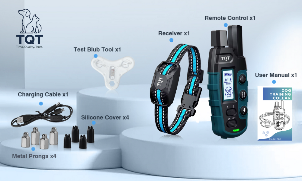 Automatically Stop Dog Barking:TQT bark collar for large dog adopts an advanced smart dog barking recognition chip to accurately identify the dog's barking and vocal cord vibration, protecting your dog from accident shock. The bark collar has 5 adjustable sensitivity levels, 2 working states (beep+vibration; beep+vibration+shock).
